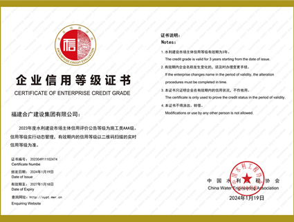 • · 2024水利建設AAA企業信用等級證書 03-02